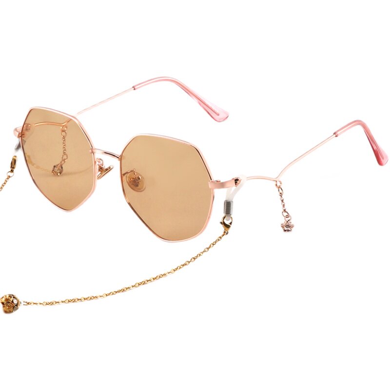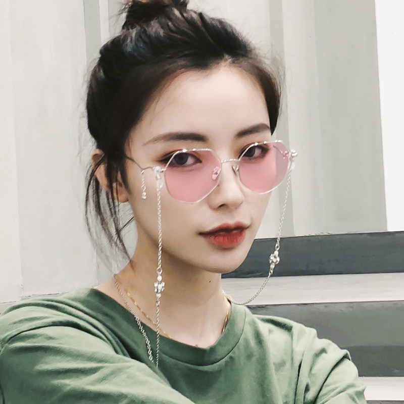 Personality Discoloration Sunglasses Lady Round Face slim large frame with chain polarized sun Eye Chaofy UV Temperament