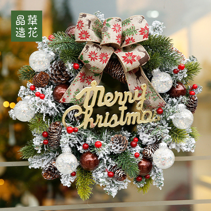 Jinghua Christmas Weater Snow Flower Decorates Christmas Walk Door Decorates Christmas Weath Creative Butterfly-Bow Christmas Weath