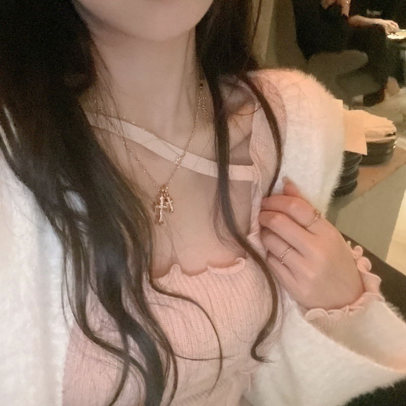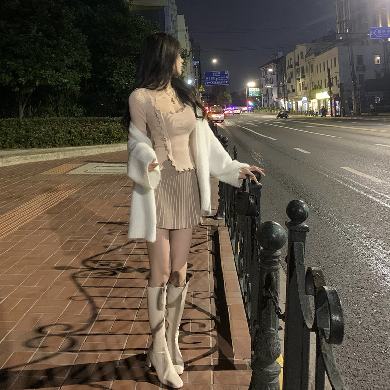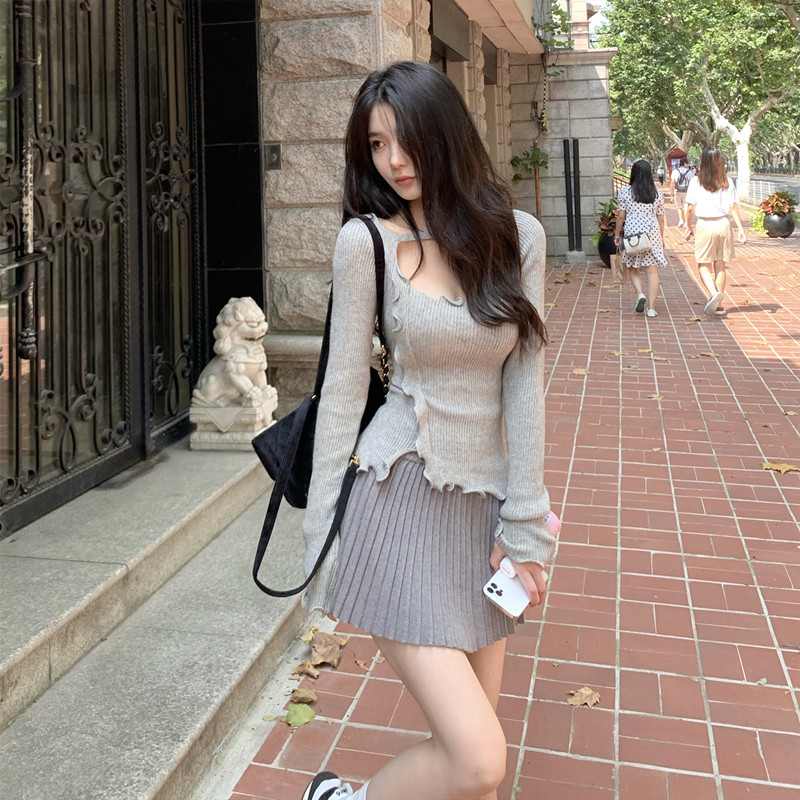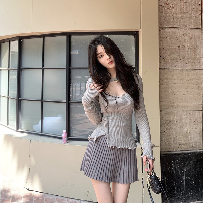JMShop gentle trap irregular knitting shirt early spring wave edge coat sexually exposed knit autumn