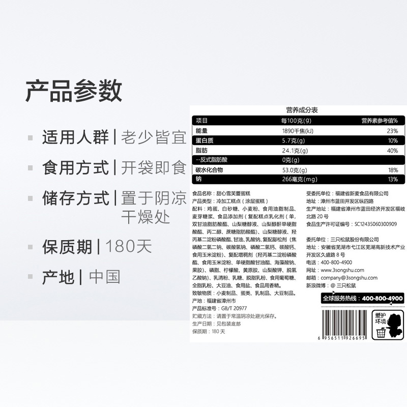 Three Squirrels Chevre Cake 1000gX1 Box Breakfast Milk Chocolate Bread Meal Replacement Snacks