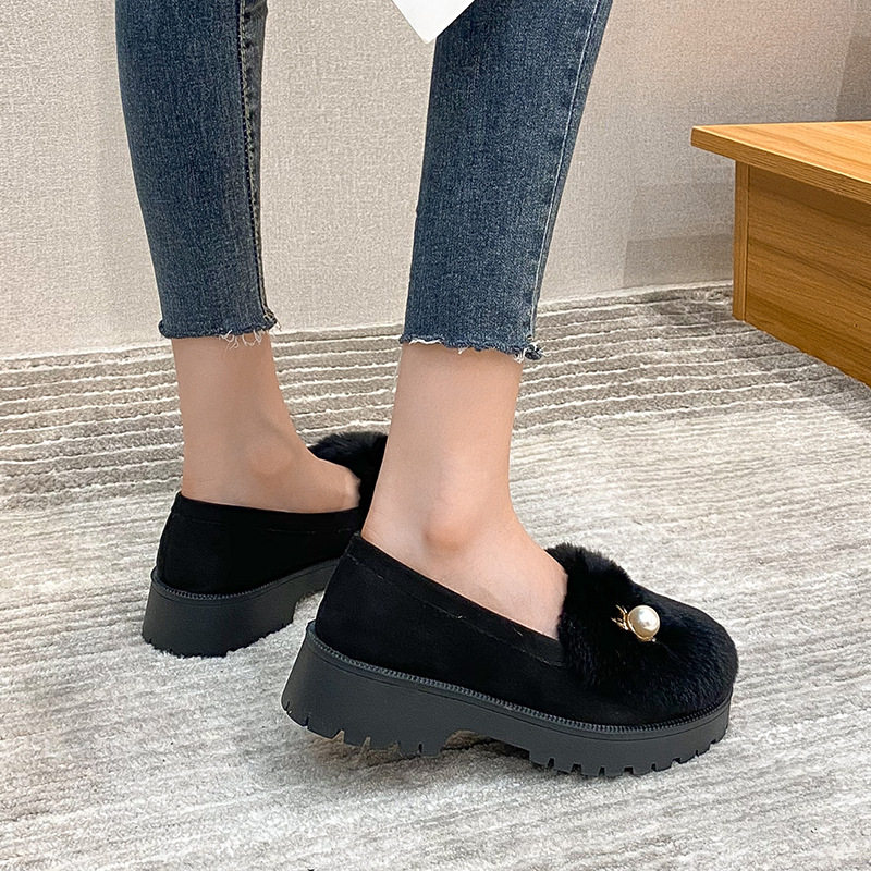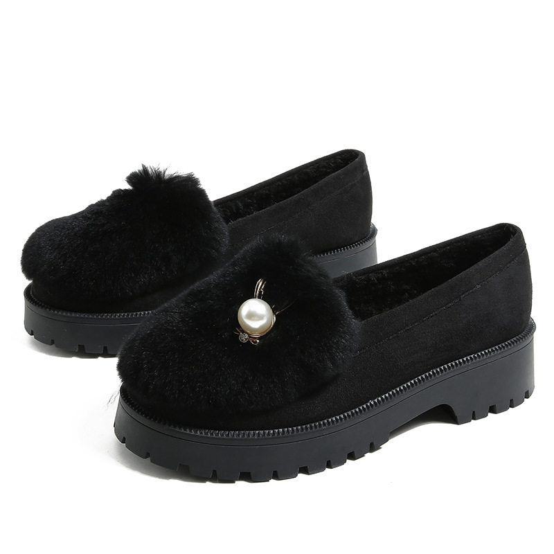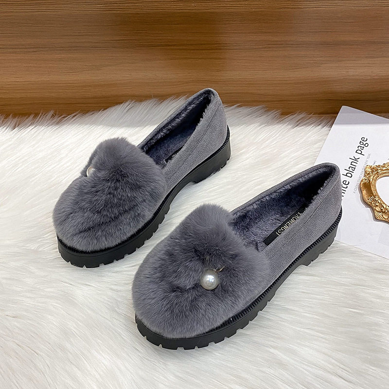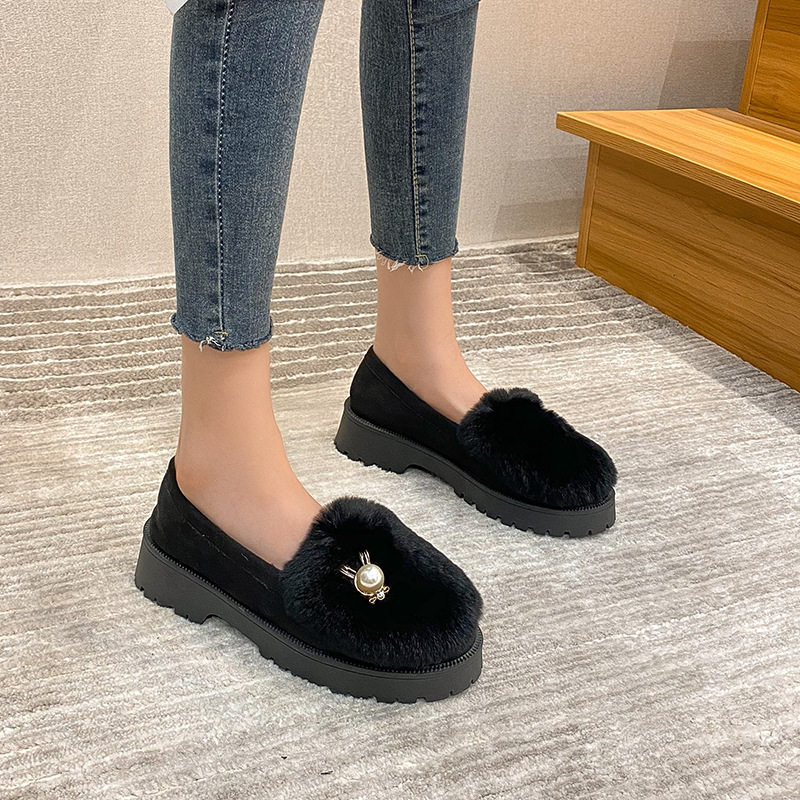 Pregnant women's shoes, soft soles, feet, puffy, non-slip and velvet rabbit hair, warm Bean shoes, women
