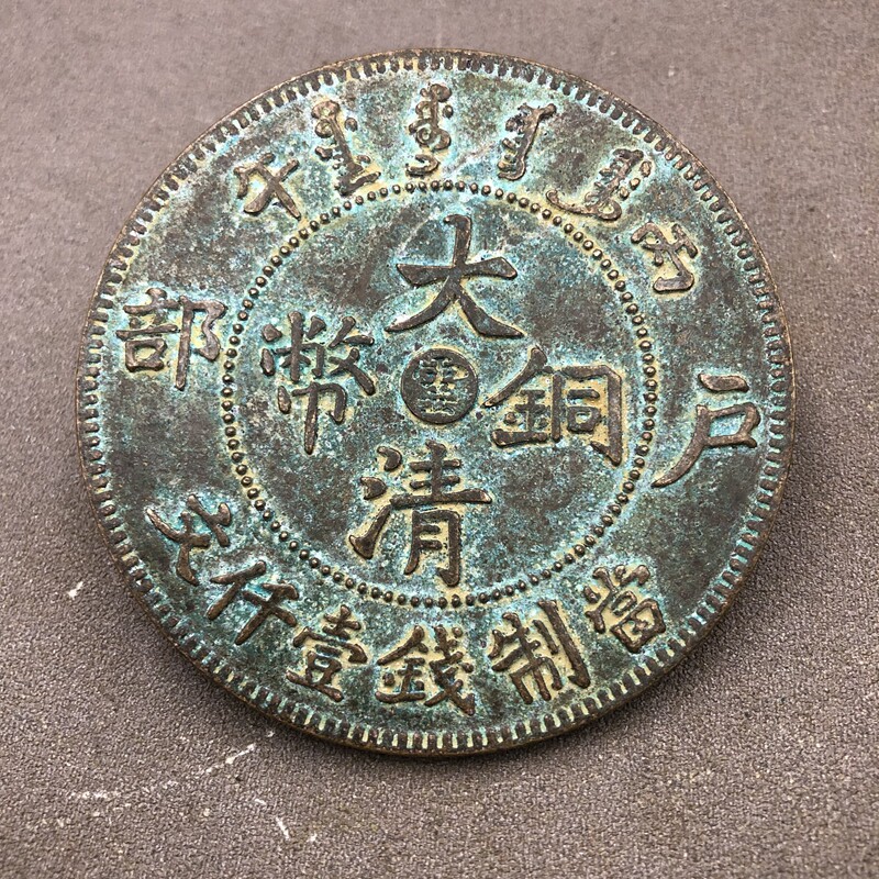 Bing Wu Yun Huyou Department Cloud word Qing copper coin 1 thousand copper plate copper coin retro large copper plate diameter about 7 8cm