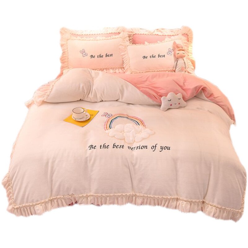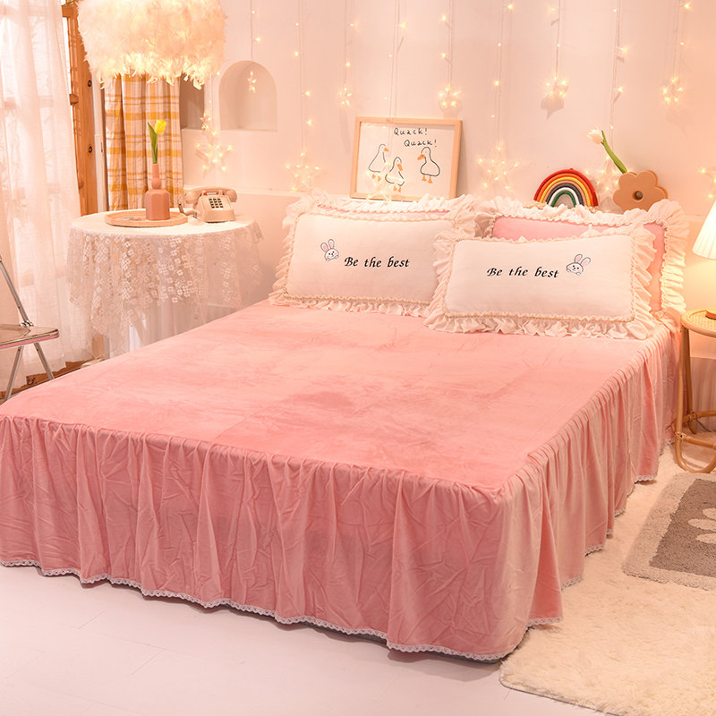 Net Red Princess Wind Milk Suede Bed Skirt Cover Four Sets Winter Thickened Warm Flange Suede Coral Suede Bed