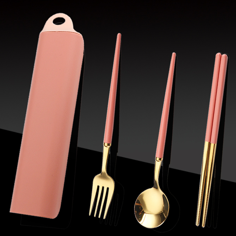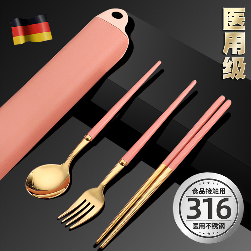 German 316 stainless steel tableware chopsticks spoon suit cute three - piece suit for student collection box