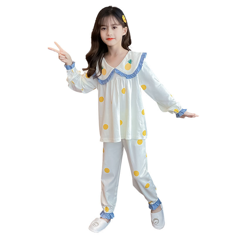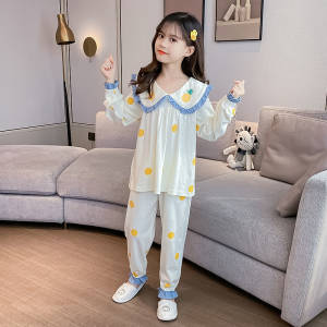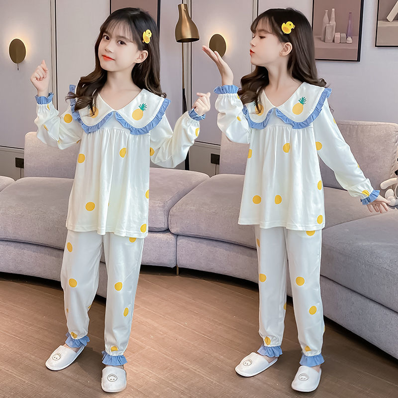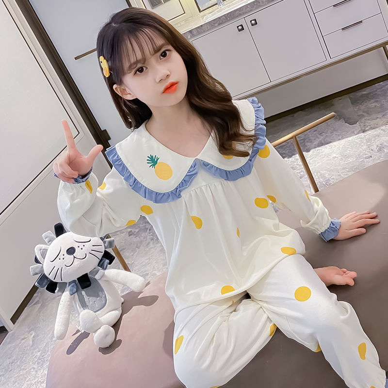 Children's pajamas spring and autumn clothes 2022 new girls' long-sleeved cotton Western style pullover little girl homewear suit autumn