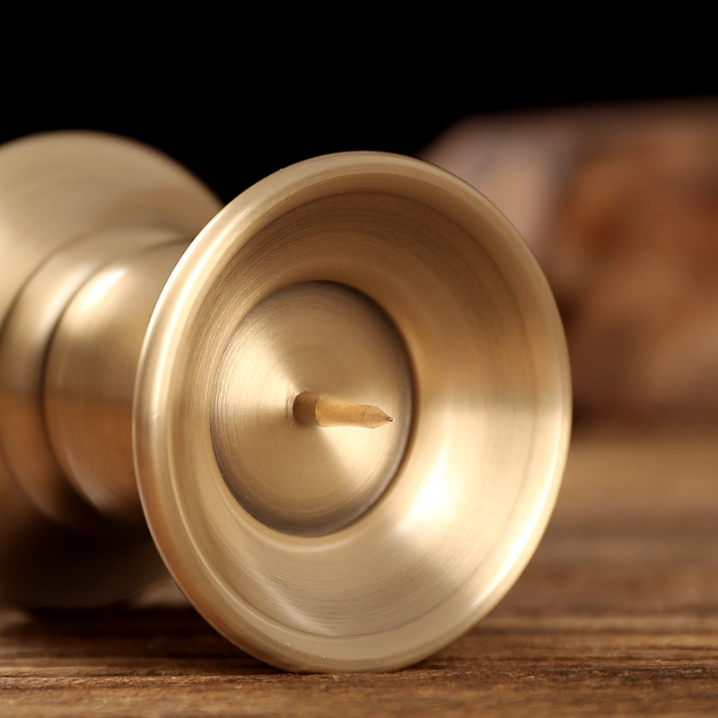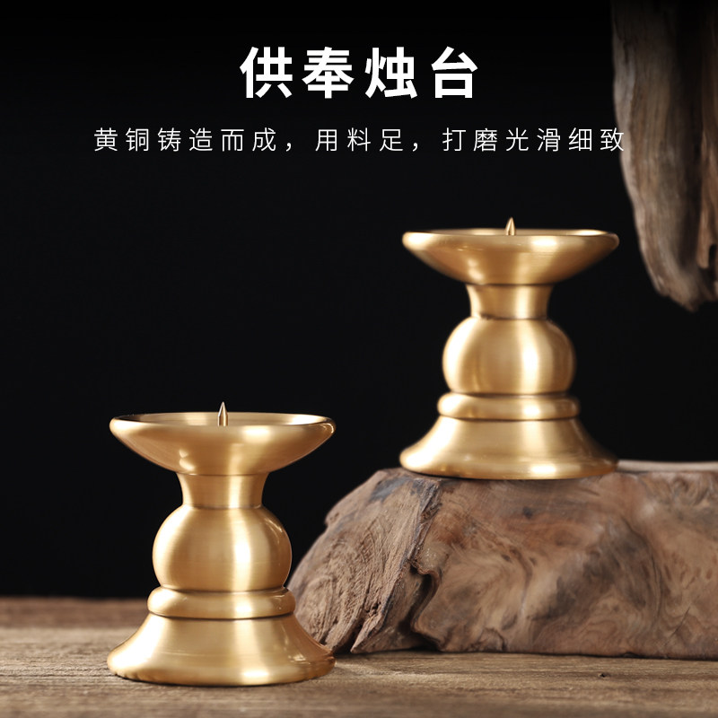 Pure copper household worship candlestick Changming lamp for Buddha supplies Buddha lamp Guanyin God of wealth retro candlestick Zen ornaments