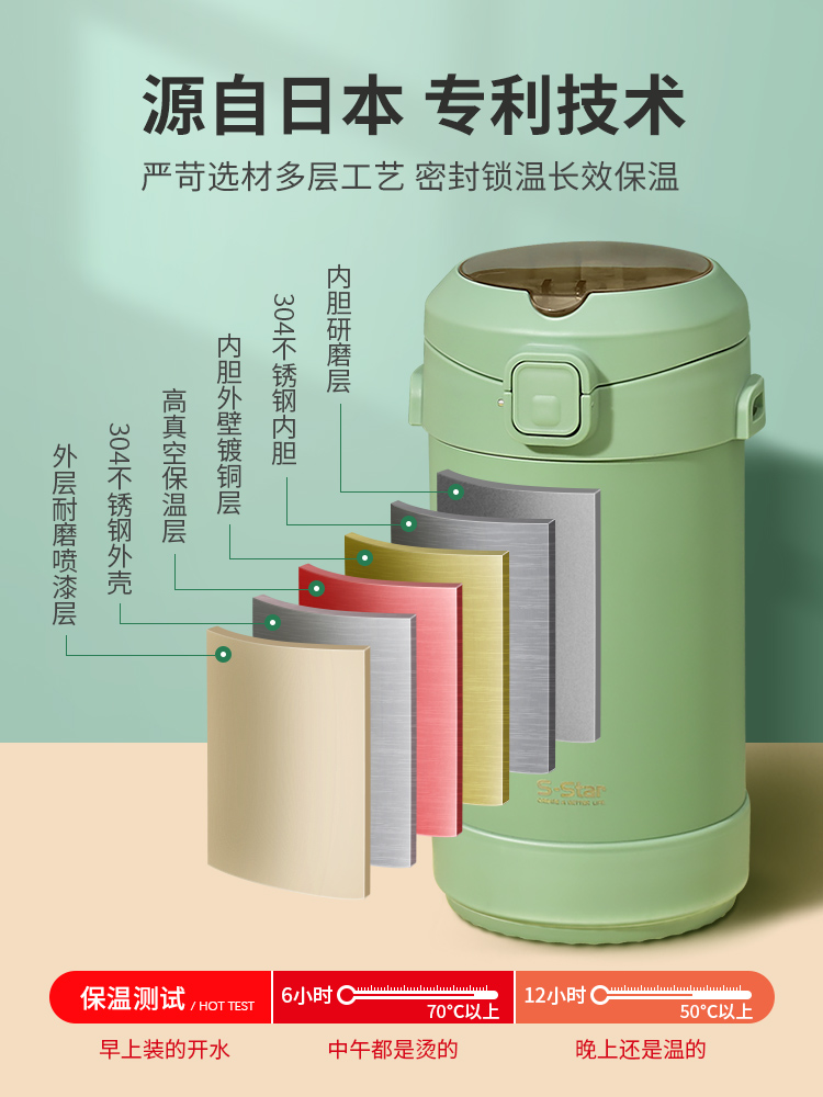(Insulation 12h) 2-layer 1 8L lunch box (green 304 spoon) (Insulation 12h) 2-layer 1 8L lunch box (apricot 304 spoon) (Insulation 12h) 2