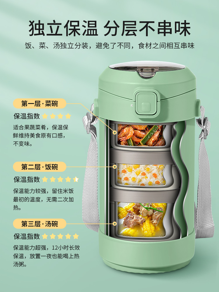 (Insulation 12h) 3 layers 2 2L lunch box (green 304 spoon)