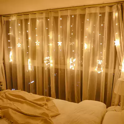 Christmas decorative curtain lights, indoor rooms, holiday romantic scenes, lighting strings, bedroom starry lights