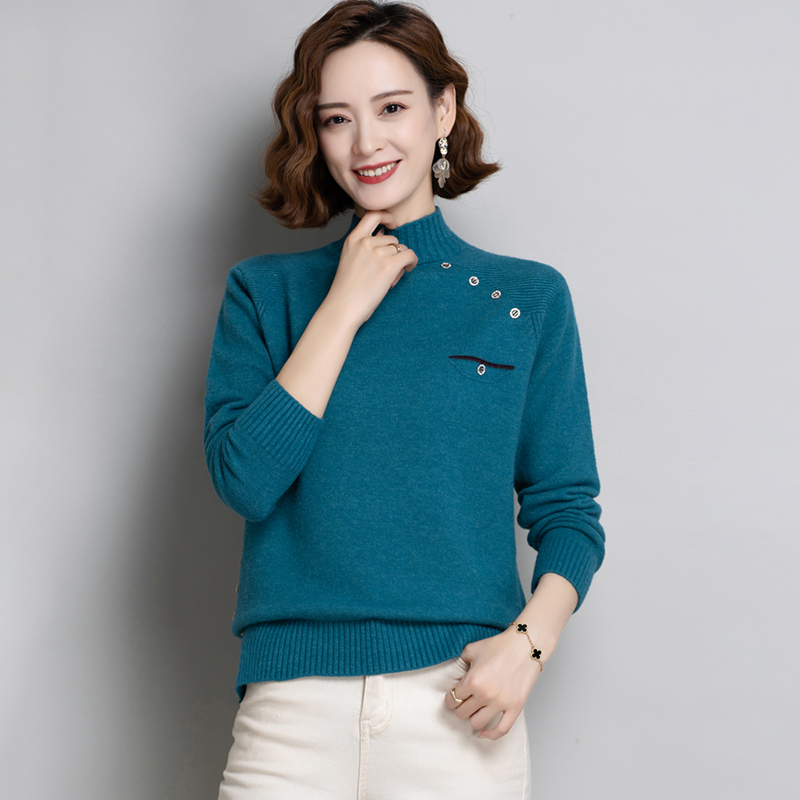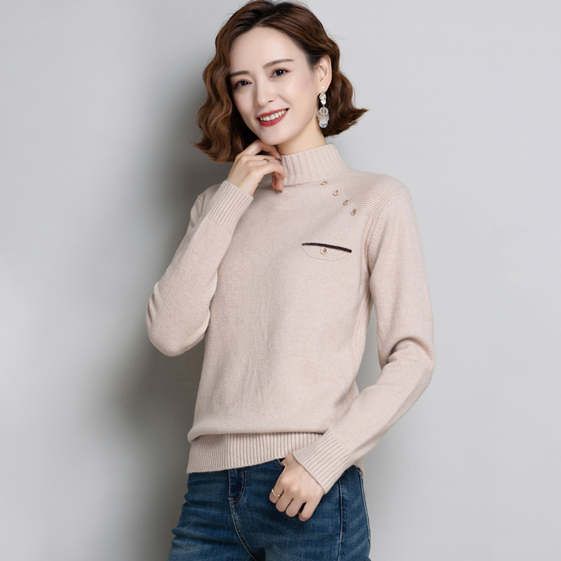 Odos City Cashmere Sweatshirt Lady Semi-High Neckline Fur Coat Autumn Winter Inner Hitch Loose Knit Base Goat Sweatshirt