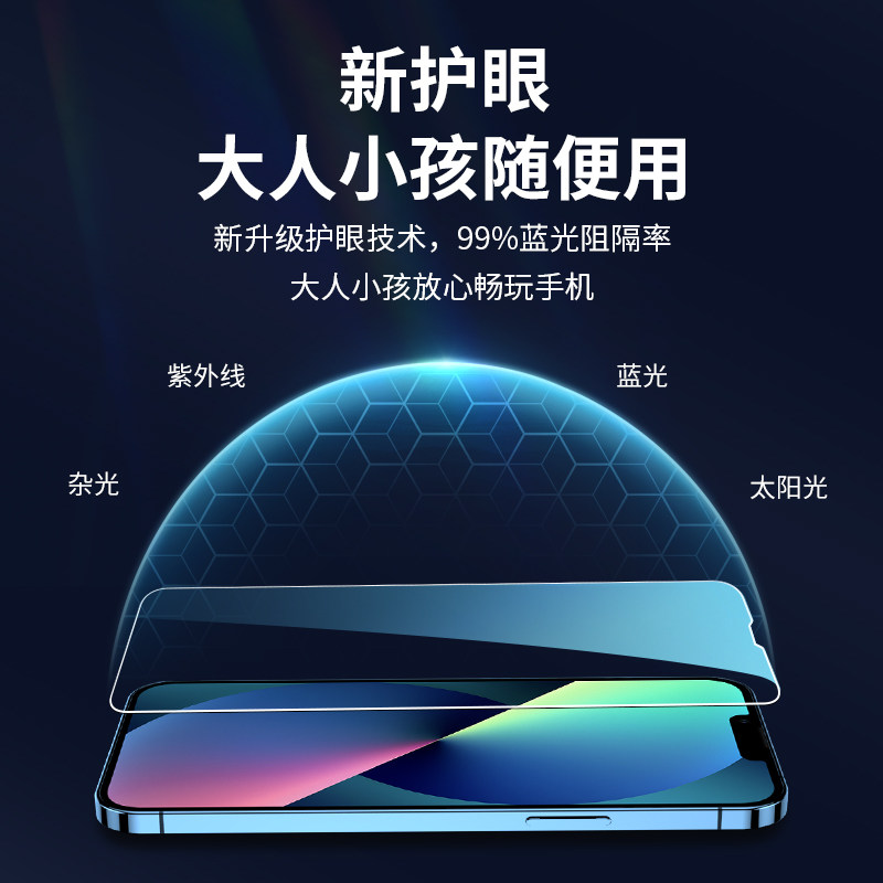 Apple 13 toughened film iphone13 mobile phone protective film 13Pro fullscreen coverage proMax high definition eye care mini full bag edge max anti-peep por apple thirteen screen fans