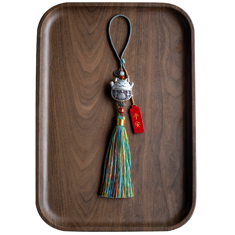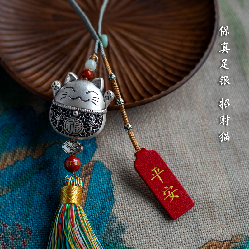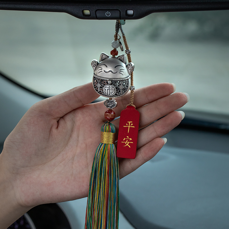 Park House Pure Silver Trick Cat Car Hung On-board Hanging Accessories High-end Mesh Red Car Pendant Handmade Original Safety Car Ornament