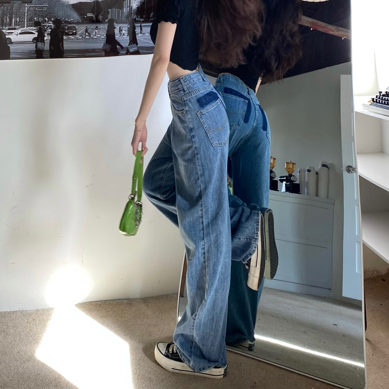 175 Tall Bags PRINTING AND DYEING STRAIGHT DRUM PANTS JEANS WOMAN 170 LENGTHENED VERSION COVETED RETRO WIDE FEET TOWERING PANTS SUMMER