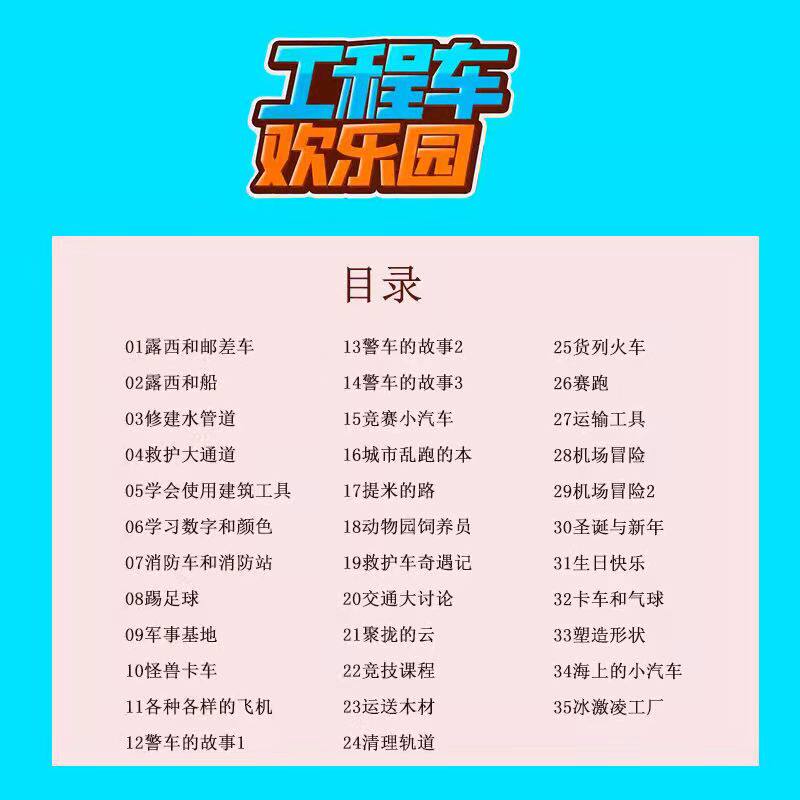 Children's cartoon cartoon engineering car happy garden HD video car home DVD disc