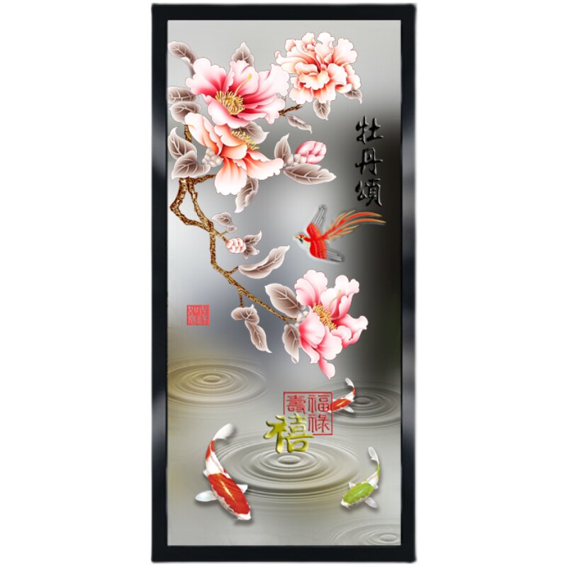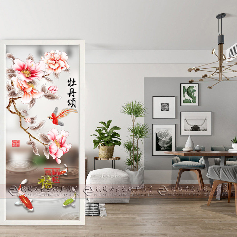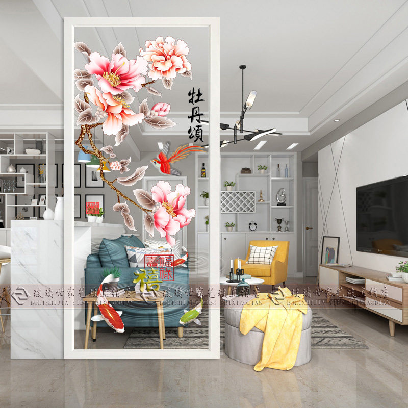 New Chinese Minimalist Art Glass Genguan Partition Screen Steel Engraving Set Making Living Room Shoe Cabinet Frosted Peony-Taobao