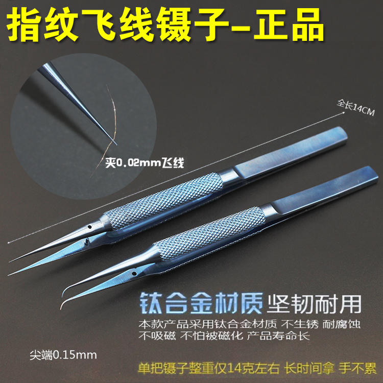 Titanium alloy - (fingerprint flying wire straight tip) titanium alloy - (fingerprint flying wire bending tip) stainless steel - (fingerprint flying wire bending tip) Aa-14 stainless steel straight tweezers Aaa-14w stainless steel bending tweezers Willie
