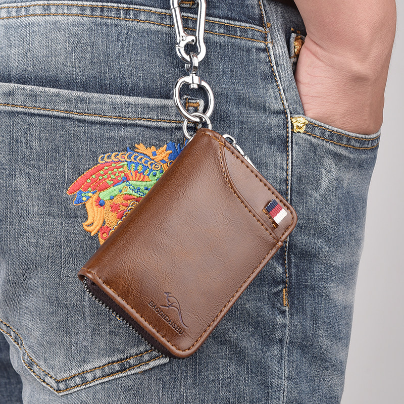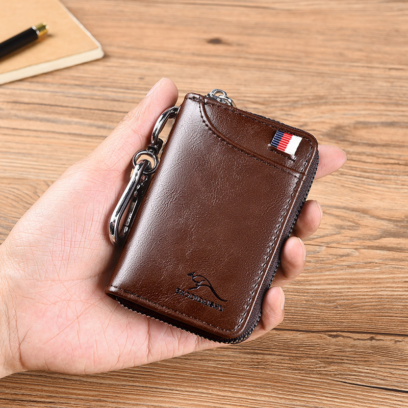 New men's real leather key bag burglar-proof brush anti-magnetic card bag multi-function wallet man style money clip tide card-Taobao