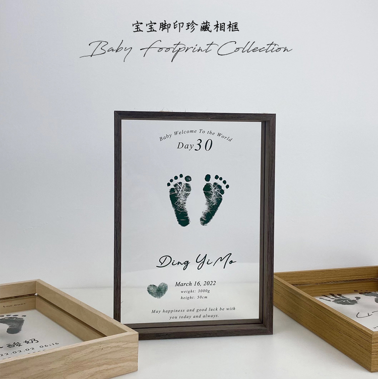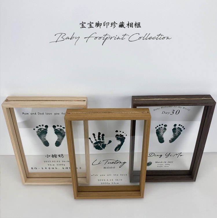 Baby hand printed footprinted baby baby full moon 100 days old European souvenir handfoot print transparent photo frame newborn gift