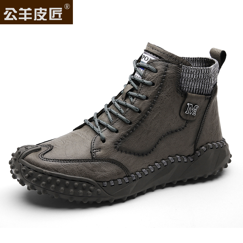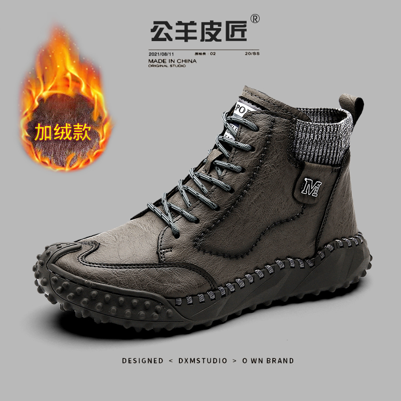 Male Sheep Leather Artisan High Cylinder Men's Shoes 2022 Winter Warm Plus Suede Cotton Shoes Non-slip Yingren Trend Outdoor Martin male boots
