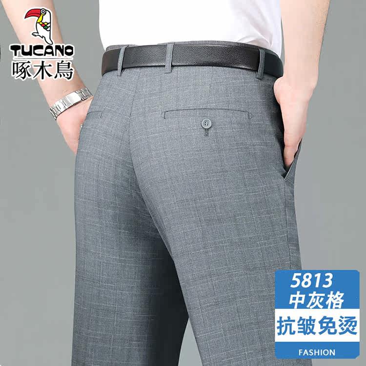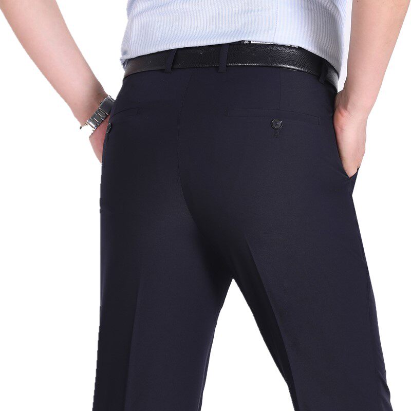 Woodpecker Summer Thin Sang Silk Middle-aged Silk Men Business Strip Suite Suite Pants Lax Different Trouser