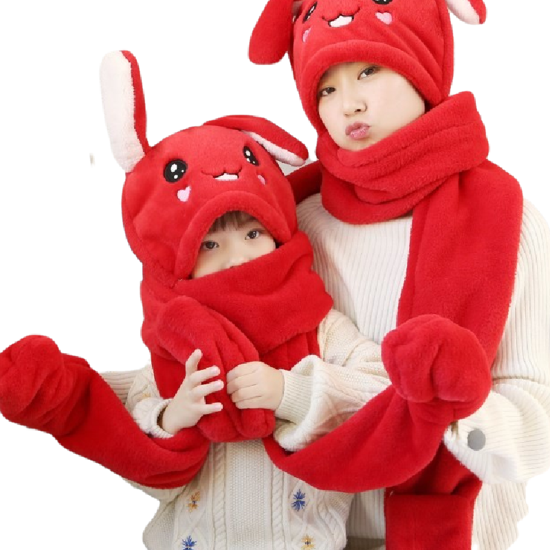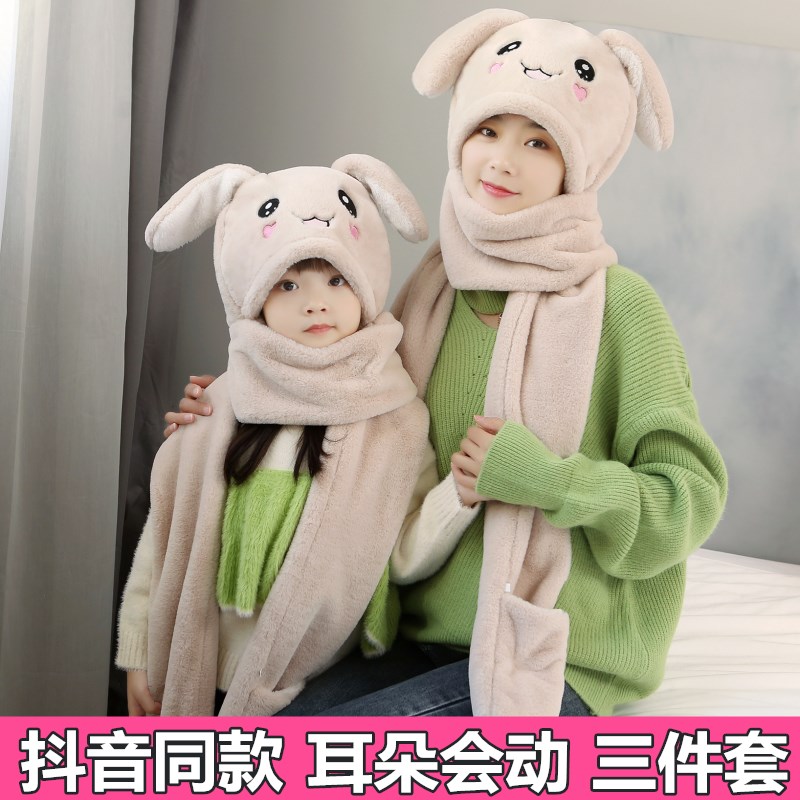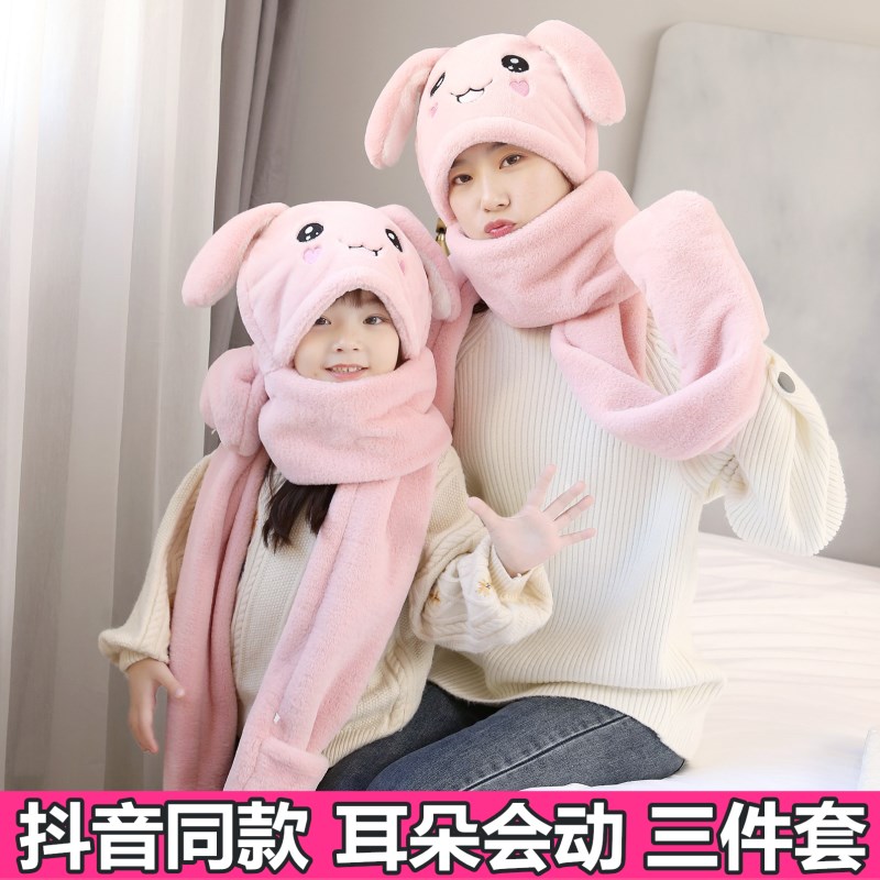 Japanese vibrato with the same autumn and winter children's rabbit ears will move hat and scarf all-in-one baby ear protection windproof hat