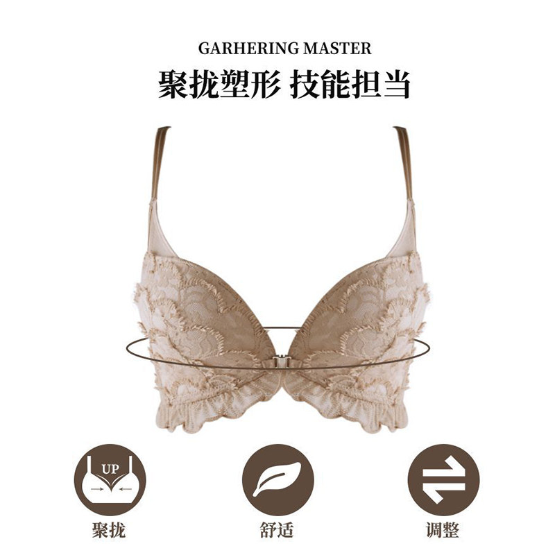 KOIBELL Front Buckle Beautiful Back Underwear Women's No Steel Ring Small Chest Gather Adjustment Bra Sexy Lace Bra Set