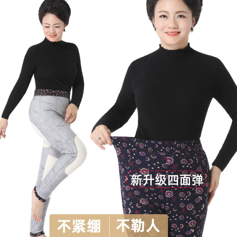 Thickening Lady High Waisted Pants Mom Cotton Pants Mid Aged Warm Pants Grandma Wool Cotton Pants Winter Gats