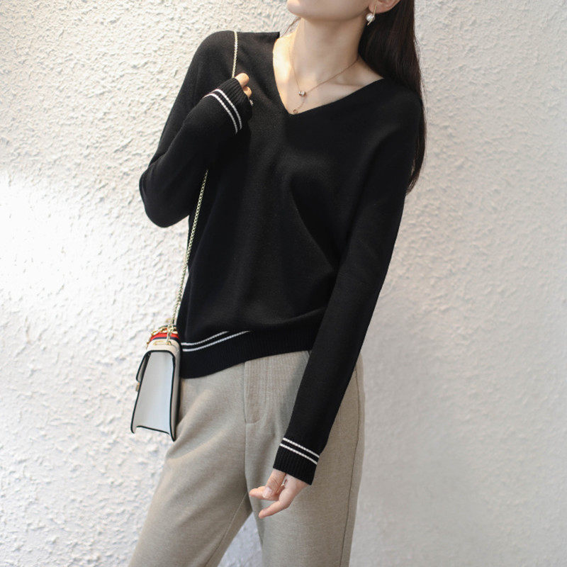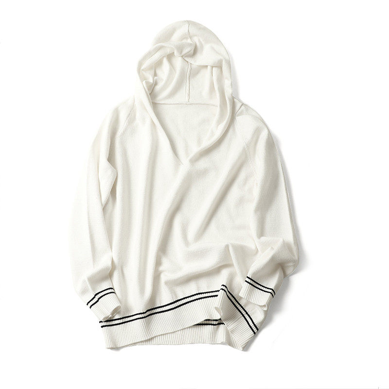 100 pure cashmere even hat goat sweatshirt female autumn winter new V collar loose with hat blouses Korean version knitted sweater short