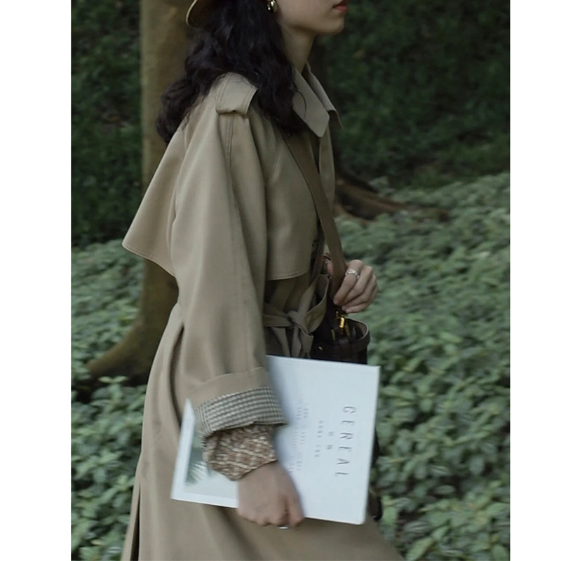 Retro Inlan windcoat jacket female medium long version small sub 2022 spring autumn high-grade sense card for its cashew texture large coat