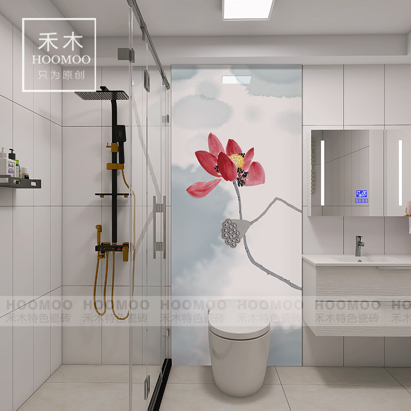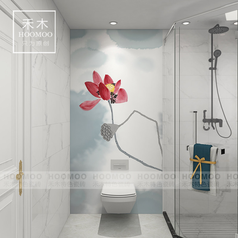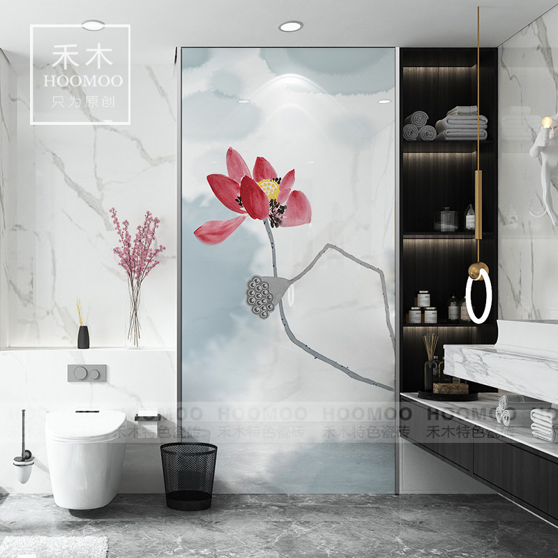 Foshan powder room tile toilet antique balcony porch living room art wall and floor tile decorative painting new Chinese lotus