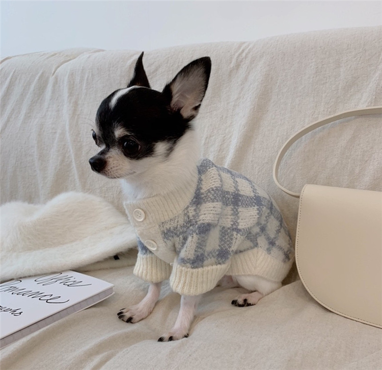 INS Wind Korea Plaid Open-Shirt Autumn Winter Warm small Medium Dog Puppy Kitty Sweater Guidi Doll Pet Clothes-Taobao