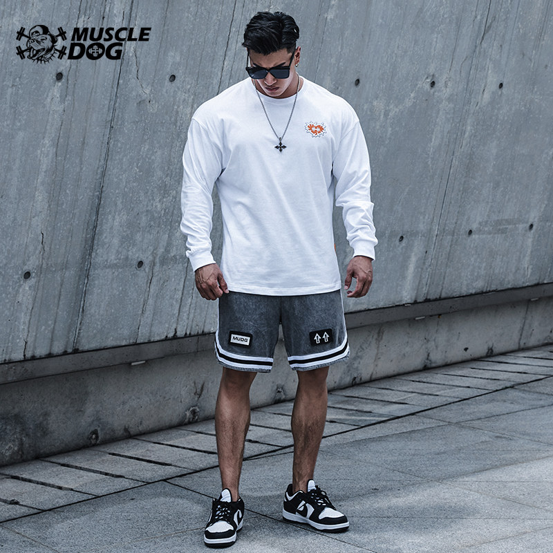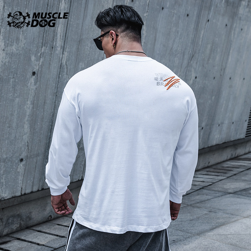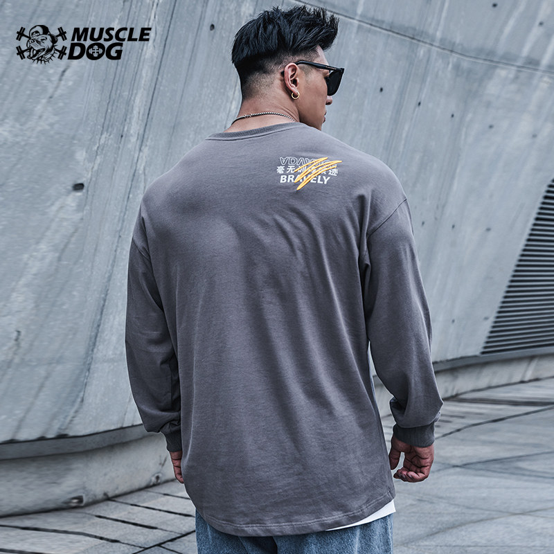 Muscle dog exercise leisure long sleeve T shirt men tide collar loose and simple training clothes
