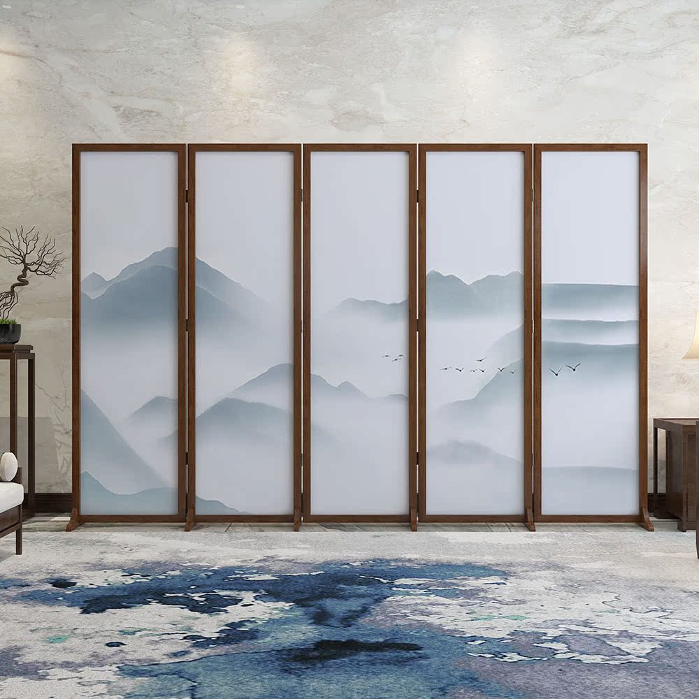New Chinese landscape screen Partition Living Room Entrance door shielded Xuanguan solid wood office Hotel can be folded and moved