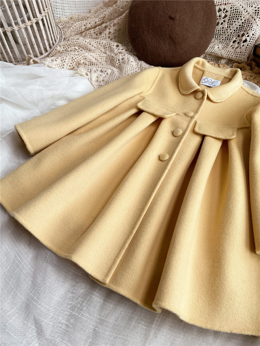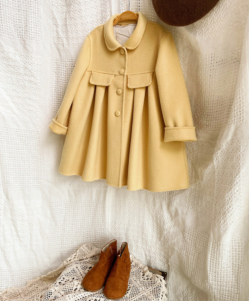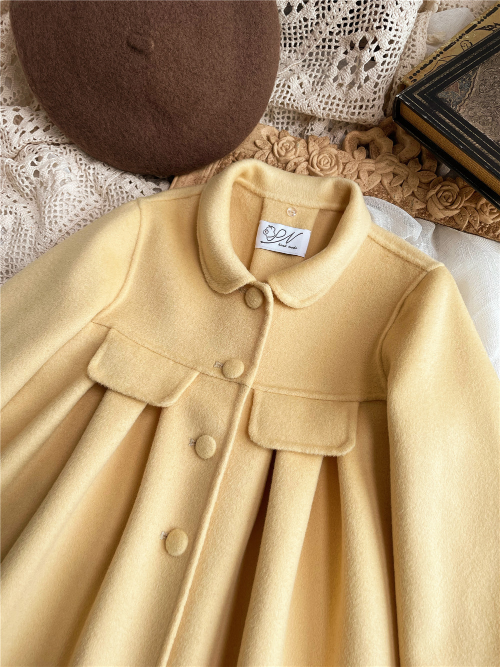 Petit Nez] retro 100% wool double-sided cashmere hand sewn with children's milk yellow pleating coat