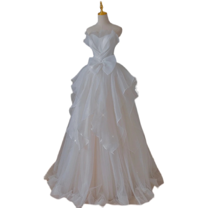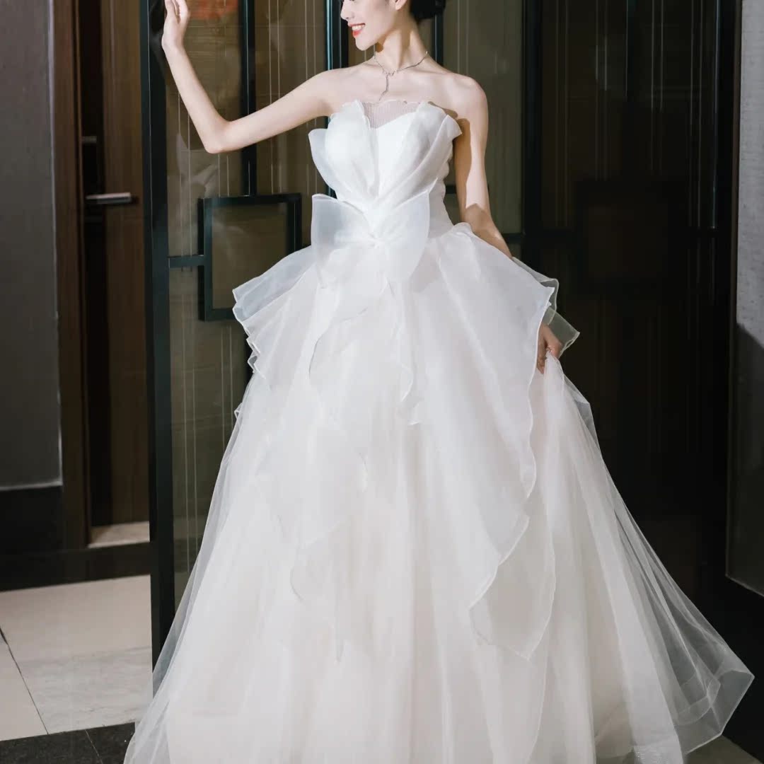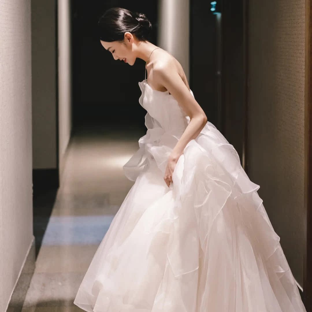 Han-style minimalist light wedding dress 2021 new brides go out to greet guests on the Chested Lawn Wedding