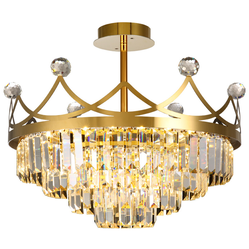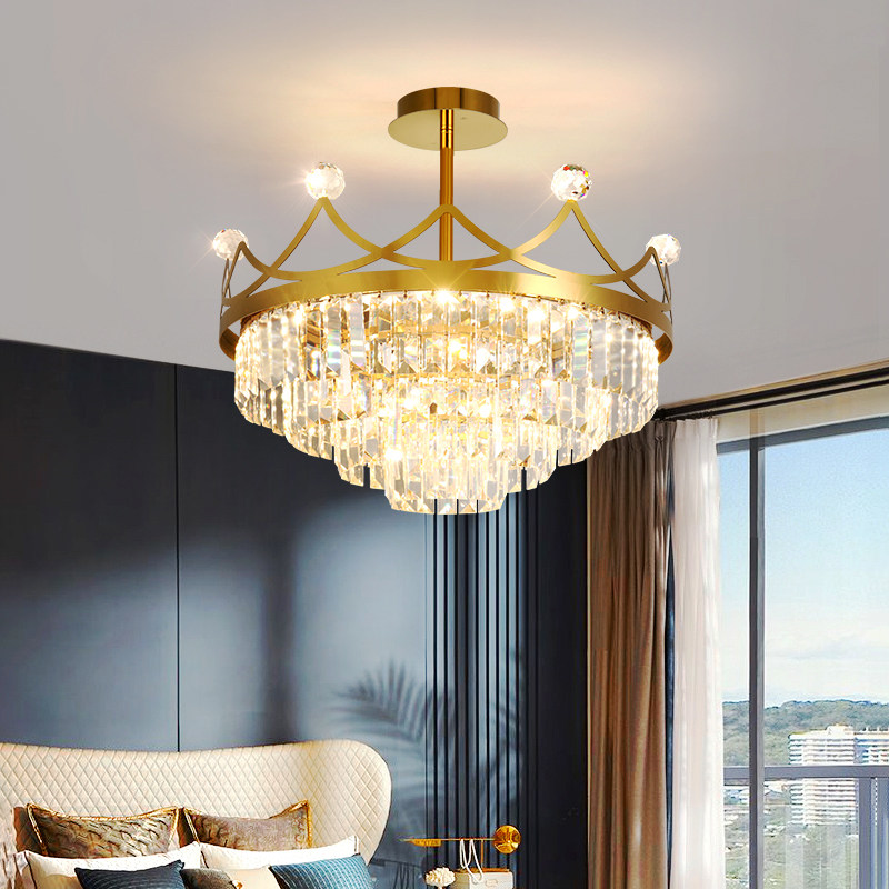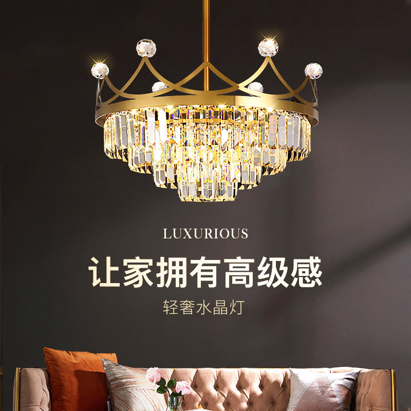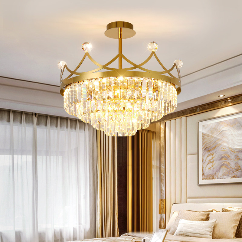 Stainless steel crystal chandelier French light luxury master bedroom lamp crown modern minimalist princess room girl net red lamp