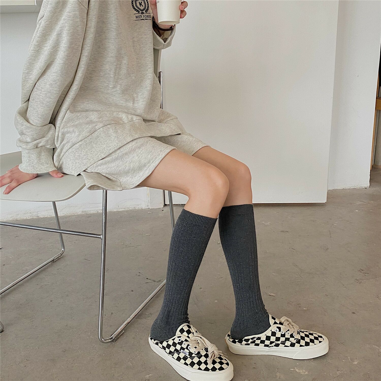 Summer simple thick needle calf socks female ins tide knee socks solid color socks cotton all-match stockings