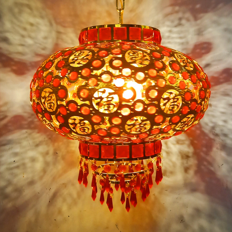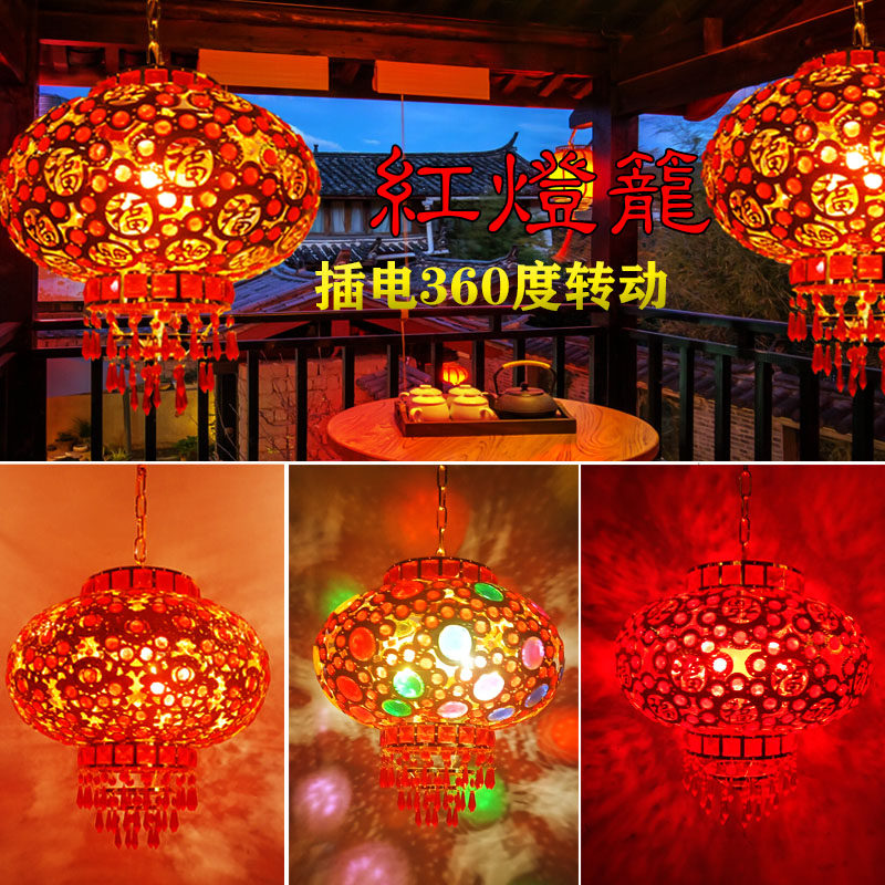 Joe Accommodate Balcony Living Room Gate Lantern With Light Blessing Characters Wedding Seven Colorful Walk Horse Plug-in Electric Rotary Motion Red Lantern Chandelia
