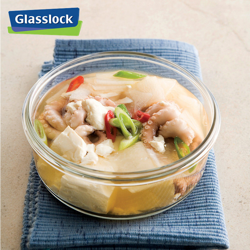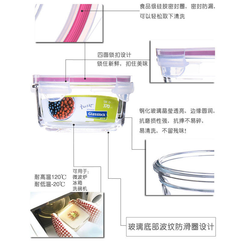 Glasslock glass lunch box round crisper bowl with lid student food crisper bento lunch box seal