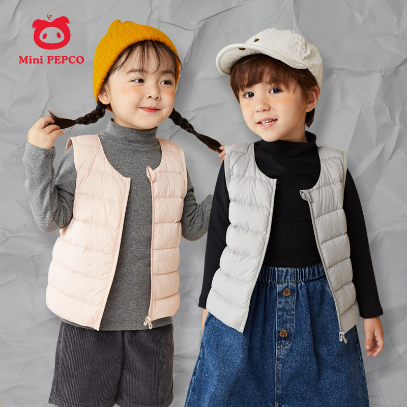 Boys' Lightweight Down Jacket Vest Autumn and Winter Children's Baby Warm Vest Girls' Jacket Piggy Banner Spring Dress