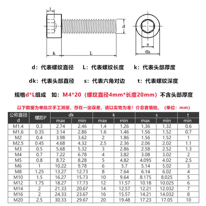 304 stainless steel inner hexagon screw cylinder head bolt cup head extension screw M2M3M4M5M6M8M10-M24