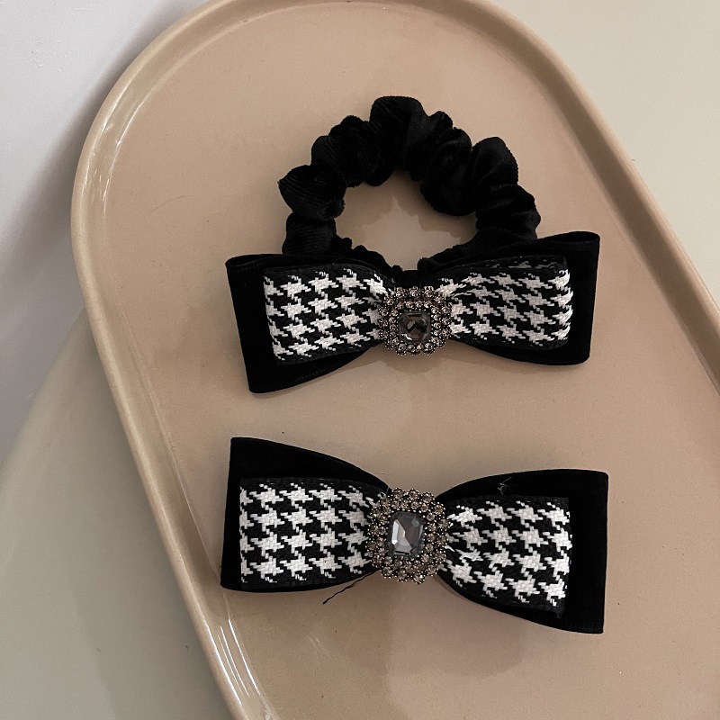 Korean ins hair ring fashion retro houndstooth grab clip net red tie meatball head rubber band hair rope hair clip head rope