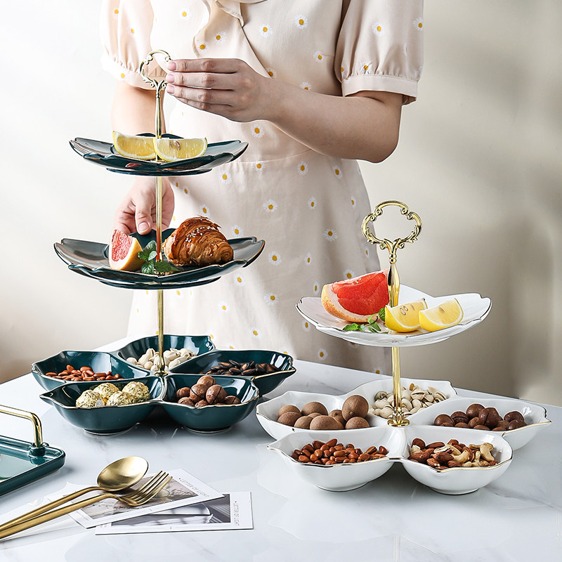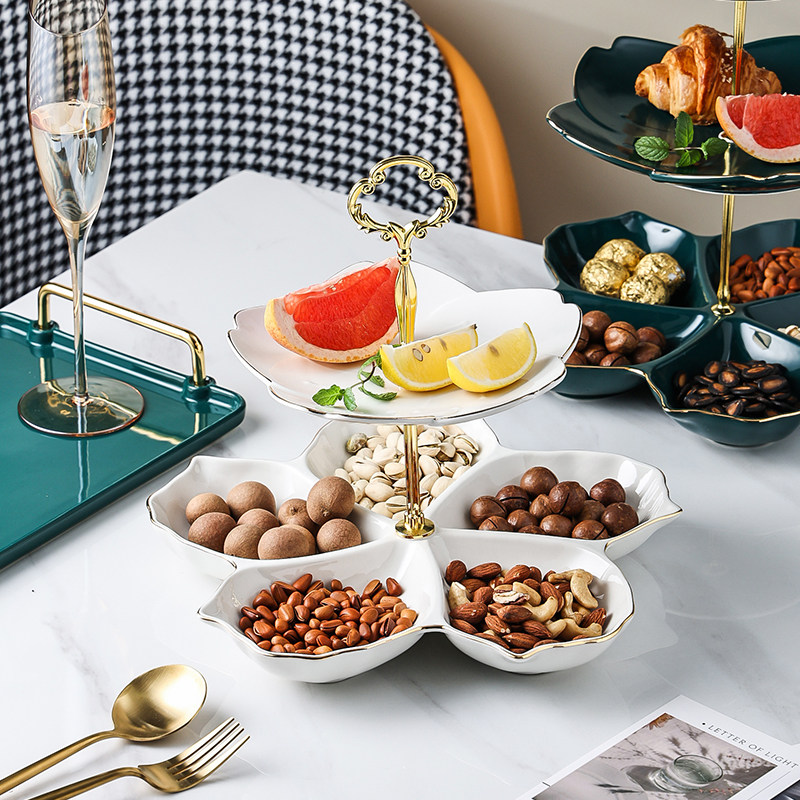 Light extravaganza Three layers of ceramic fruit tray Dining Room Tea Table Home Divided Fruit Pan Snack Candy Pan Tea Dessert Table Hem