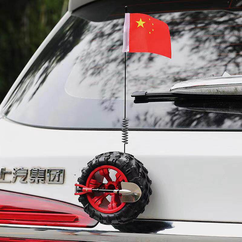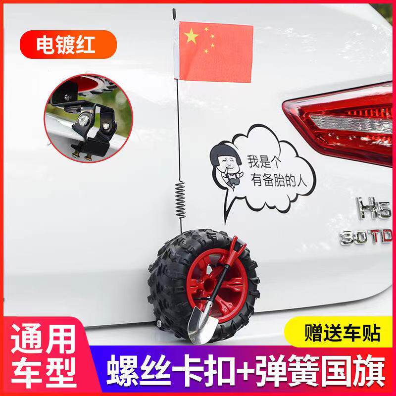 Car decoration small spare tire mini off-road trunk red flag small tire funny locomotive personality creative tail