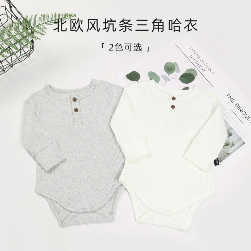 Aqua Youtong baby long-sleeved bag fart bottoming pure cotton soft pit strip romper children's clothing triangle romper spring and autumn