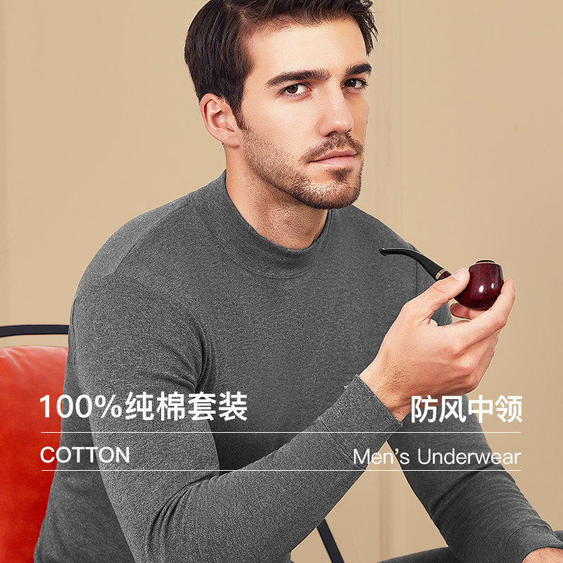 Seven wolves autumn clothes men's spring and autumn cotton sweater thin autumn clothes sanitary pants half high collar hot clothes men's suit soil