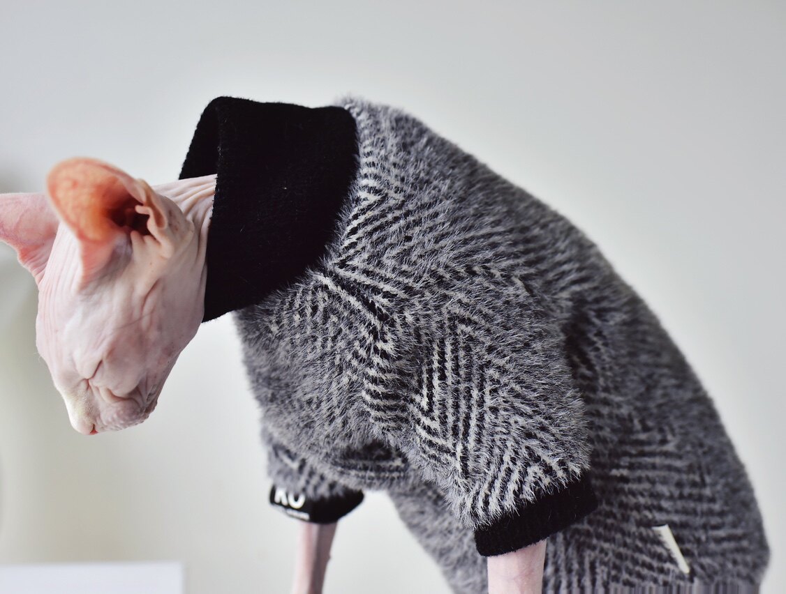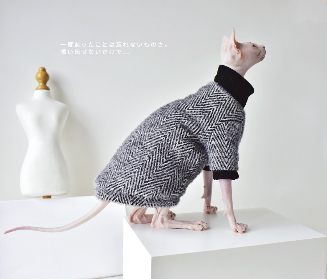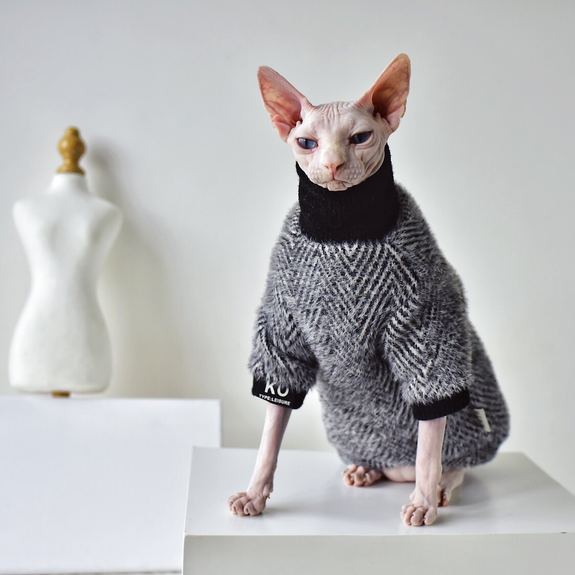 YH-high profile Korean version herringbone mink velvet high collar sweater winter thickened with warm Sfinks no hairy cat clothes