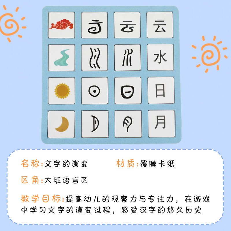 Kindergarten area corner activity materials put in the large class language area Chinese character evolution game homemade play teaching aids