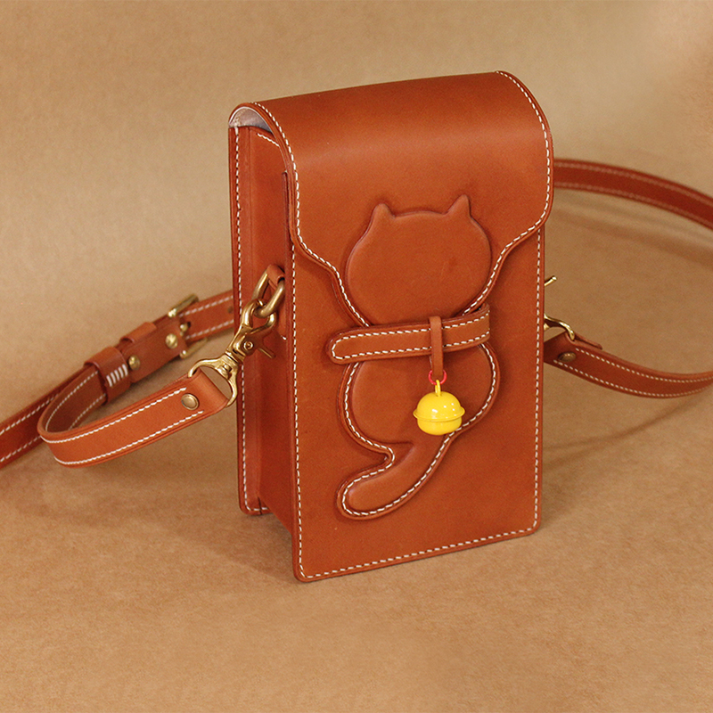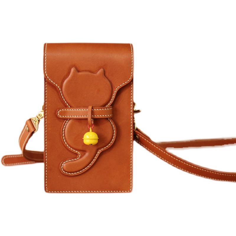 Handmade leather goods one shoulder diagonal mobile phone small square bag version drawings niche style design cat shape creativity