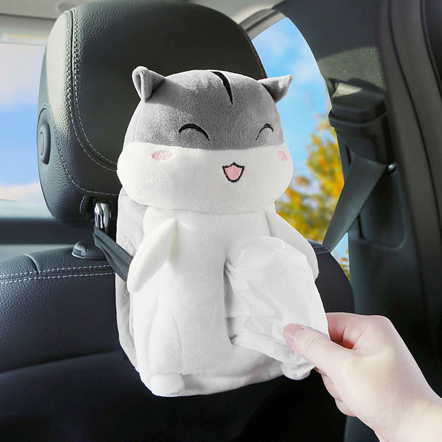 Paper Towel Box Vehicular Extractable Toilet Paper Doll Creative Plush Cute Hamster Dining Towel Paper Case Hanging Car Tissue Box Hanging Bag